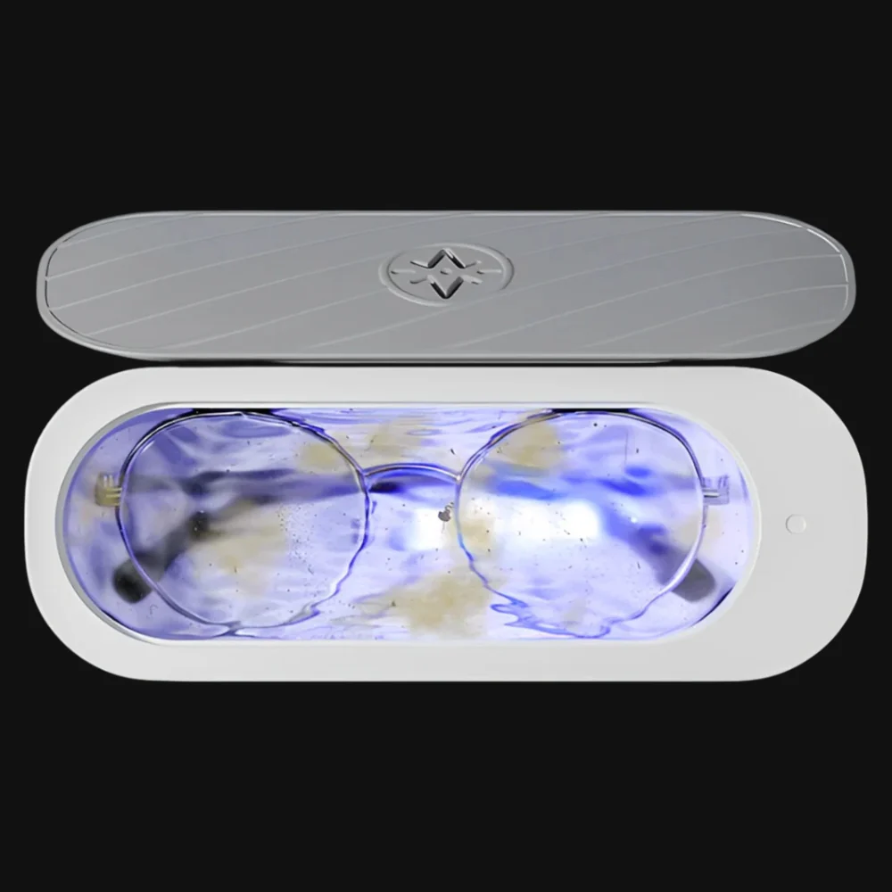 So entstand der OptiClear™ – ein kompaktes Tischgerät, das mit Wasser und Ultraschallwellen Brillen, Schmuck und sogar Uhren gründlich reinigt.