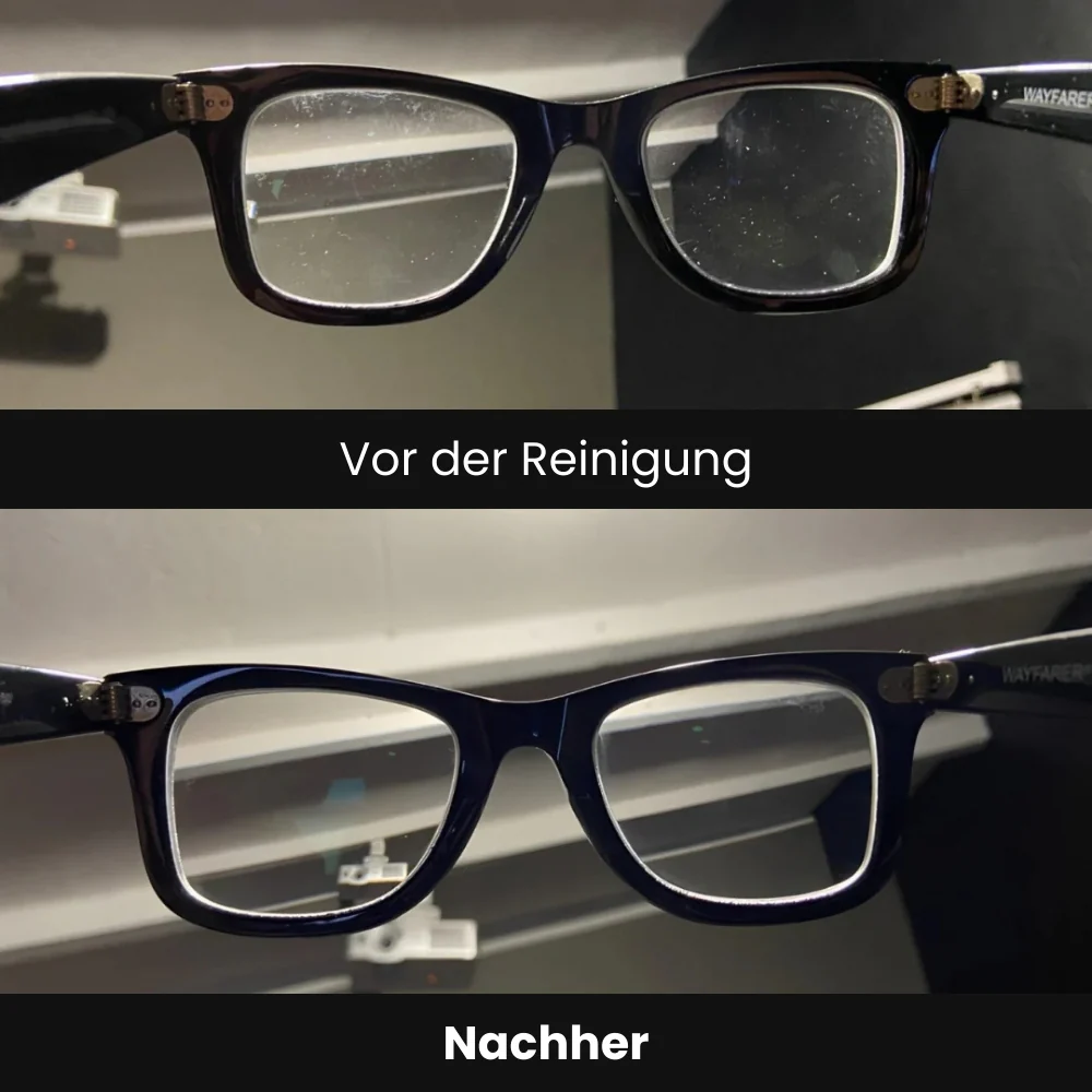 Die Lösung: OptiClear™ – ein kompaktes deutsches Gerät, das Brillen porentief reinigt und bereits tausenden Nutzern den glasklaren Durchblick zurückgegeben hat.